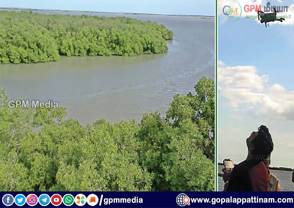 ஆசியா கண்டத்திலேயே மிகப்பெரிய முத்துப்பேட்டை அலையாத்தி காடுகளை டிரோன் கேமரா மூலம் அதிகாரிகள் ஆய்வு செய்தனர். திருவாரூர் மாவட்டம் முத்துப்பேட்டை பகுதியில் உள்ள அலையாத்திக்காடு ஆசியா கண்டத்திலேயே மிகப்பெரிய பரப்பளவு கொண்ட காடாகும். இந்த காடு புயல் மற்றும் சூறாவளி காற்றிலிருந்தும், சுனாமியிலிருந்தும் கடலோர கிராமங்களையும் கிராம மக்களையும் பாதுகாக்கும் அரணாக விளங்குகிறது. தஞ்சை மாவட்டத்தில் அதிராம்பட்டினம் மேற்கு பகுதியில் துவங்கி நாகை மாவட்டத்தின் கோடியக்கரை கிழக்கு பகுதி வரை நீண்டுள்ளது.